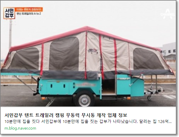 서민갑부 텐트 트레일러 정보 및 구매는 아래를 통해서 하실 수 있습니다.